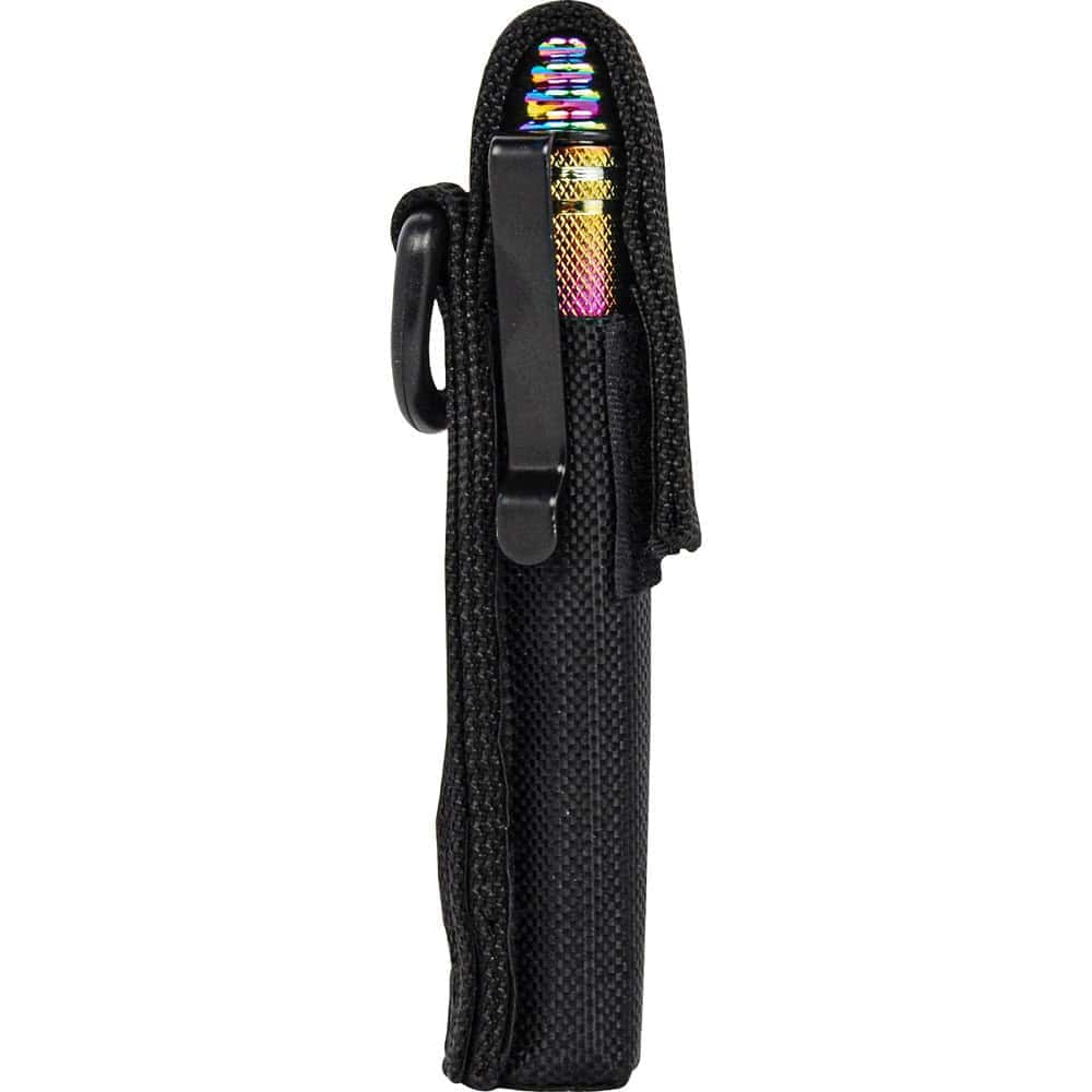 The included belt and visor clip gives you two carry options, and the key ring attachment means you can add it to your existing keychain setup if that’s more convenient. The nylon holster is a practical addition — snap it in when stored, pull it out when you need it. Total weight is 0.55 lbs, so it doesn’t drag on a belt or bag.