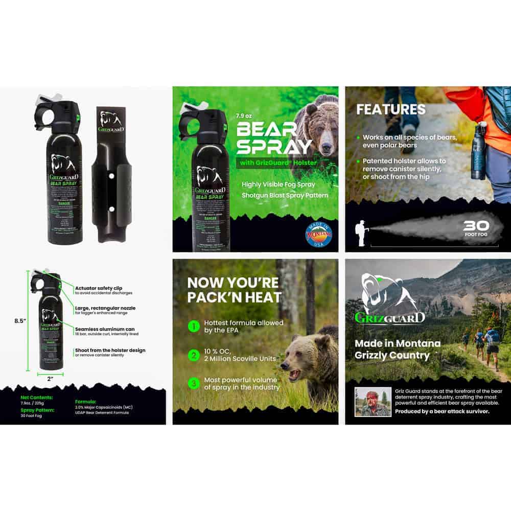 Yes. Bear spray is effective as a deterrent for both black bears and grizzly bears. The capsaicin formula affects the eyes, nose, and respiratory system regardless of bear species. The booklet included with GrizGuard covers behavior differences between species and how to read a bear’s body language, which is useful context for understanding when deployment is actually warranted versus when backing away slowly is the better move.